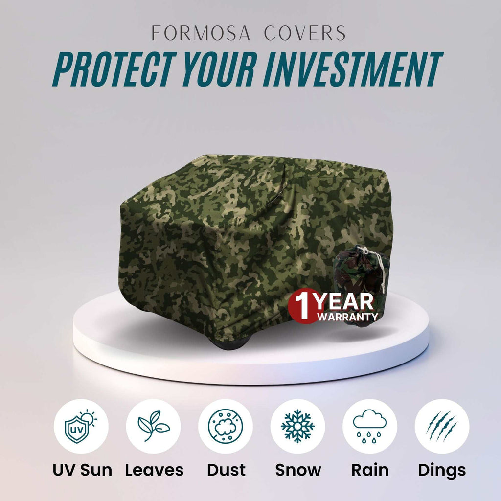 Generous Sizing: Measures 100" L x 47"/36" W x 48" H — roomy enough for most standard 2-seater roofless carts.