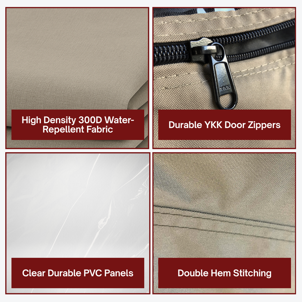 - NEW STRONGER YKK ZIPPER: We're a feedback driven company and heard you! As of 2019 we have updated our door zipper to YKK zipper which will make it much easier to zip yourself in and out of the enclosure and will be better suited for daily use. Commercial grade window zippers you can un-zip and roll up front and rear windows.