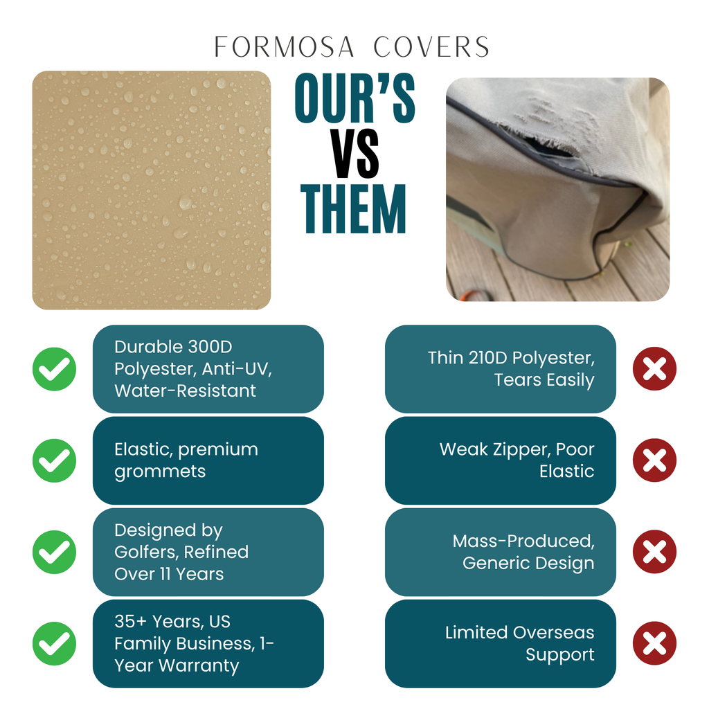 - Heavy Duty UV Treated Satin Polyester w/ Polyurethane waterproof undercoating