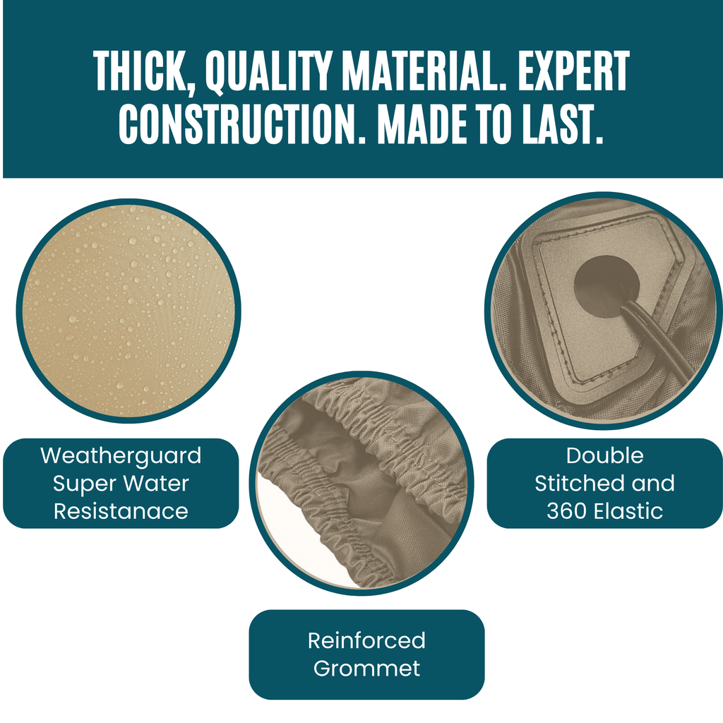 - Heavy Duty UV Treated Satin Polyester w/ Polyurethane waterproof undercoating