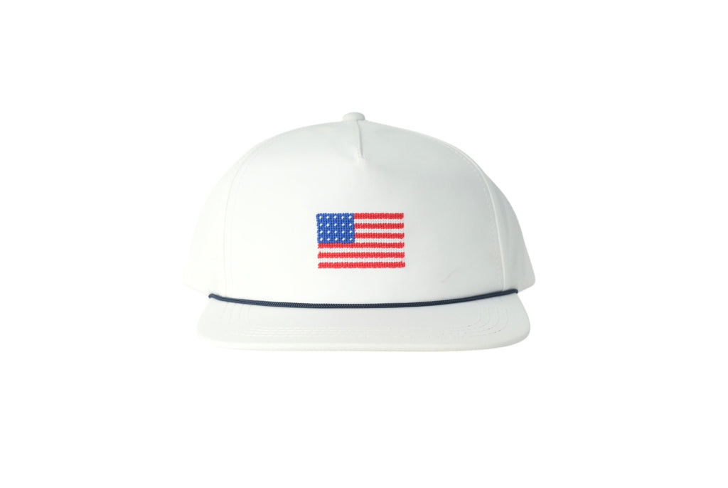 Classic American Flag logo on our performance moisture wicking material with contrast rope.