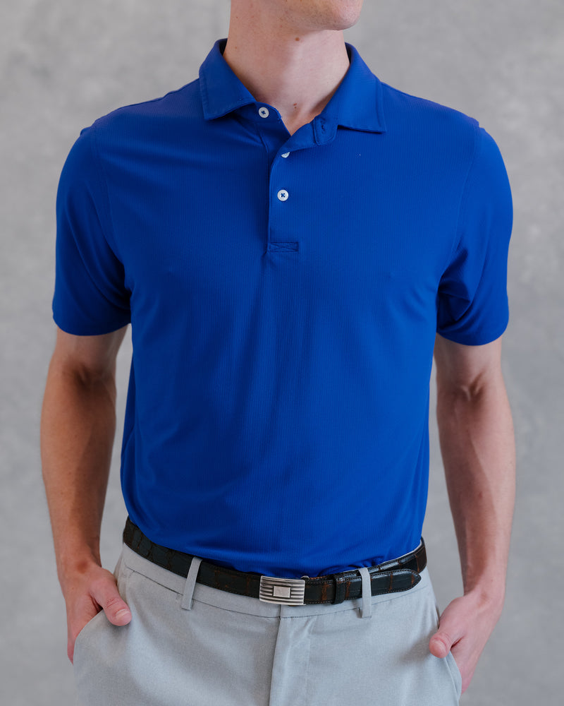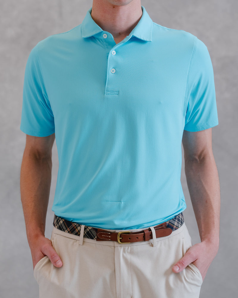 A style that keeps it simple. This solid-color sport polo goes with everything, and keeps you cool all season long. Made with our signature COOL FABRIC™, it features a unique dimpled texture that translates to less surface area against your skin, and more fresh air flowing through. The result is an incredibly breathable, quick-drying, and light-as-air shirt that cools you down when things heat up.