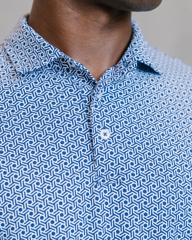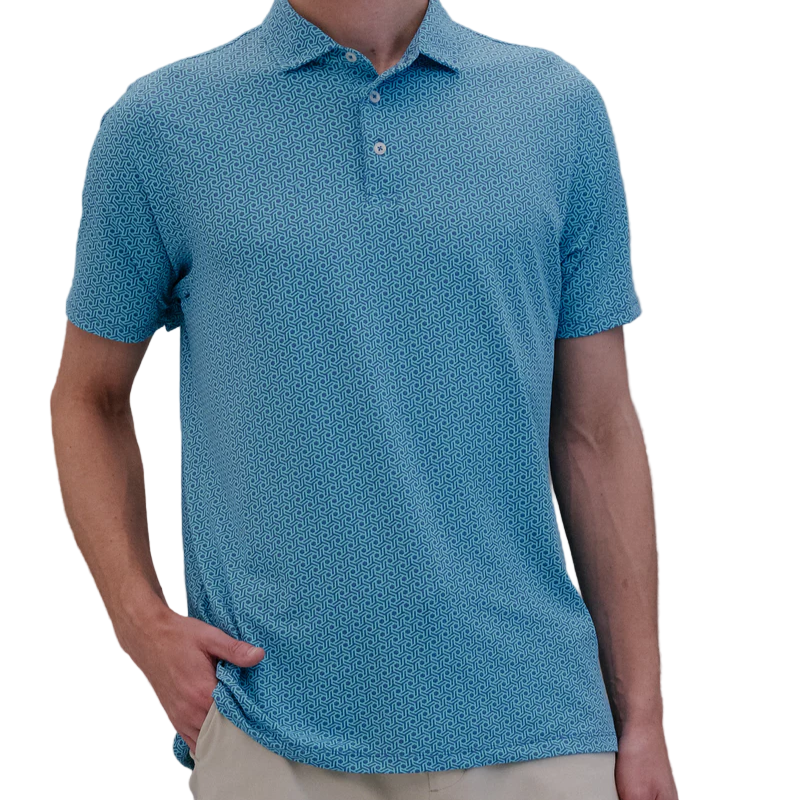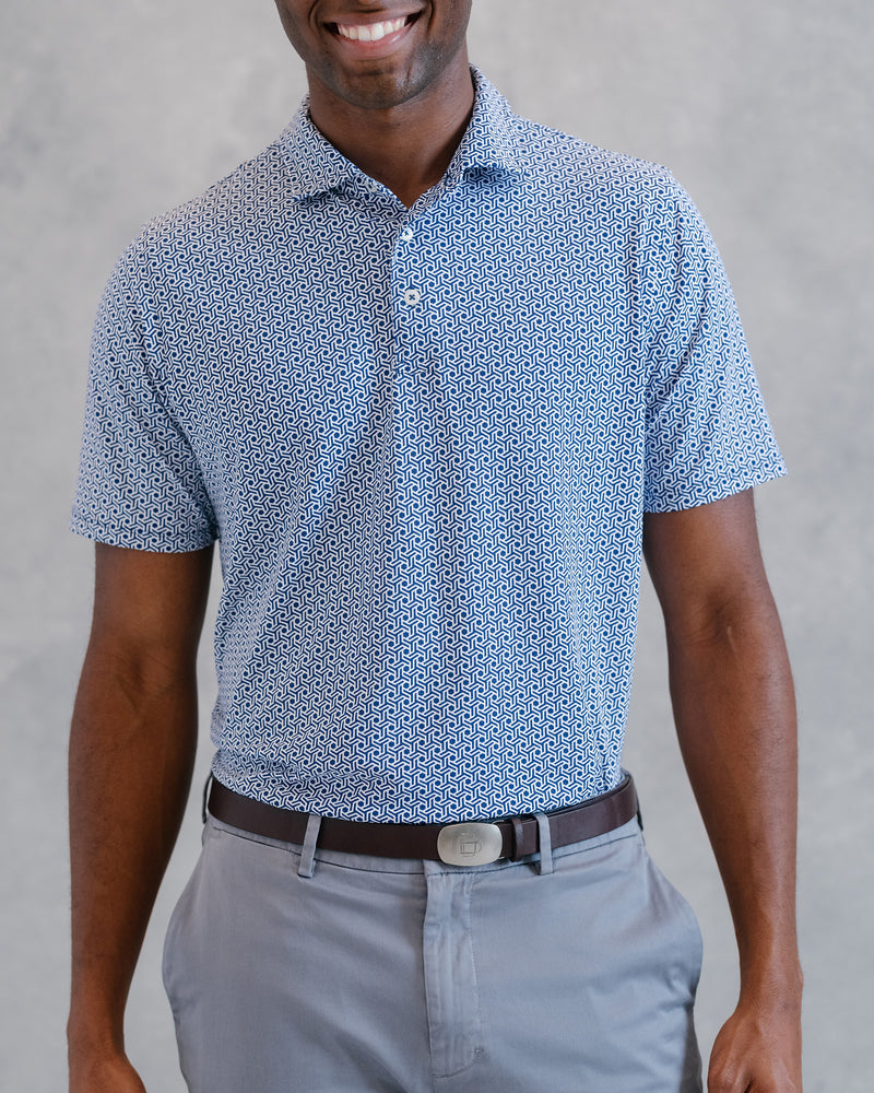 A dynamic geometric polo, complete with our signature COOL FABRIC™. Its unique dimpled texture means less surface area against your skin, so it’s breathable, quick-drying, and so light to wear. From the course to the patio, stay cool all season long.