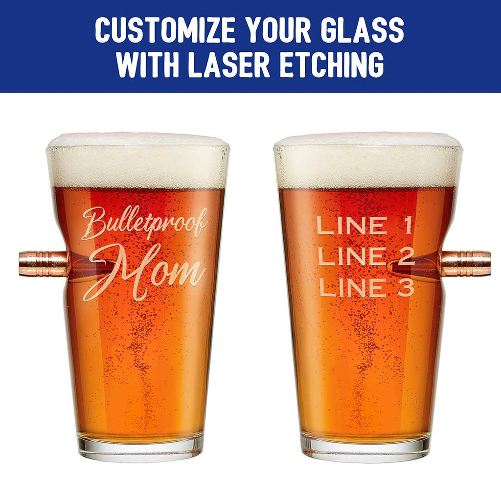 Celebrate the badass mom in your life with a handcrafted glass embedded with a real, lead-free bullet. Because brunch wine hits different when it's fired up.