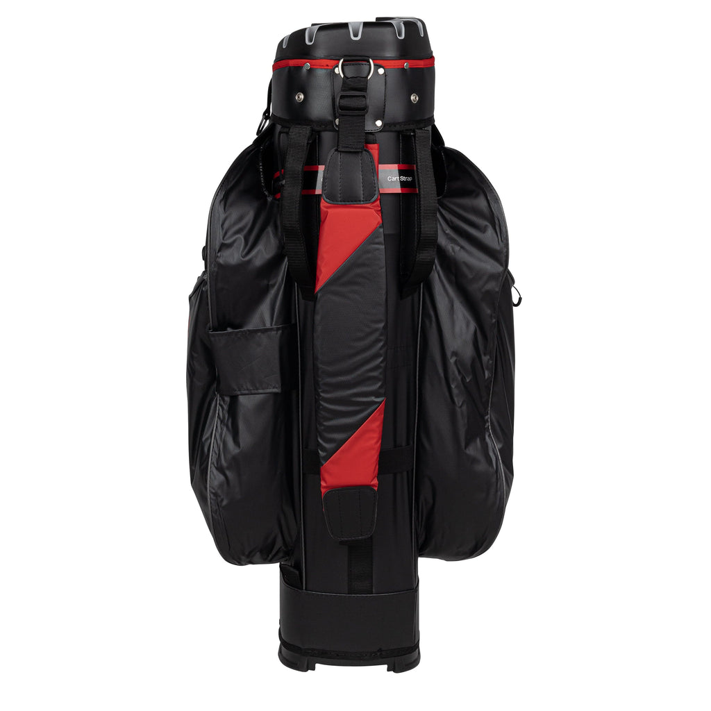 The Founders Club Premium Waterproof Cart Bag provides the ultimate protection for your clubs. The 14 Way divider system provides each club with a protective rubberized slot holding each grip away from the other. No rattles, no club damage, and knowing where every club sits in your bag, three features that every driver of a golf cart will really appreciate. Plus, The Founders Club Premium Cart Bag incorporates every other feature you would expect from a top grade Cart Bag at a fantastic price. If you drive a motorized golf cart on a regular basis this is the golf bag for you. From reaching into the Ice Pocket for a super cold drink to quickly placing your phone, watch and other valuables into a fur lined protective pocket, this bag delivers. This model is Waterproof and uses Waterproof Zippers and Waterproof Material.