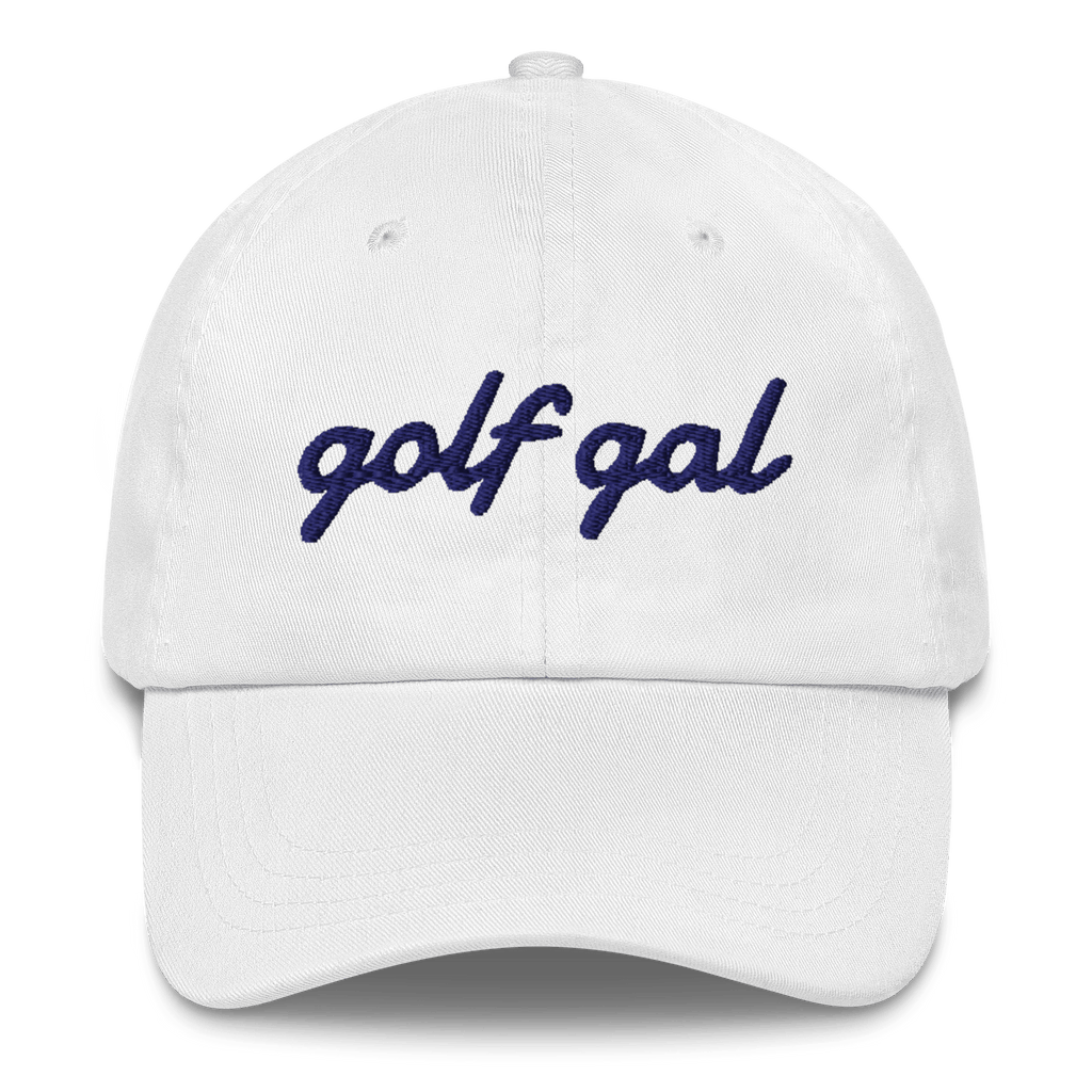 GOLF GAL Script Embroidered Dad Hat – White with Navy Thread