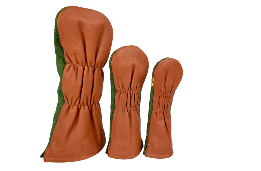 The ultimate headcover for your Driver, Fairway Woods and Hybrids. We went all out with the design and materials on these hand stitched needlepoint wood headcovers and it shows. We started with a full front hand stitched needlepoint exterior. From there we through caution to the wind and chose the best quality full grain leather available for the backing. Add in premium anti pill ultra soft fleece for the interior and the end result is something that oozes premium quality and craftsmanship.
