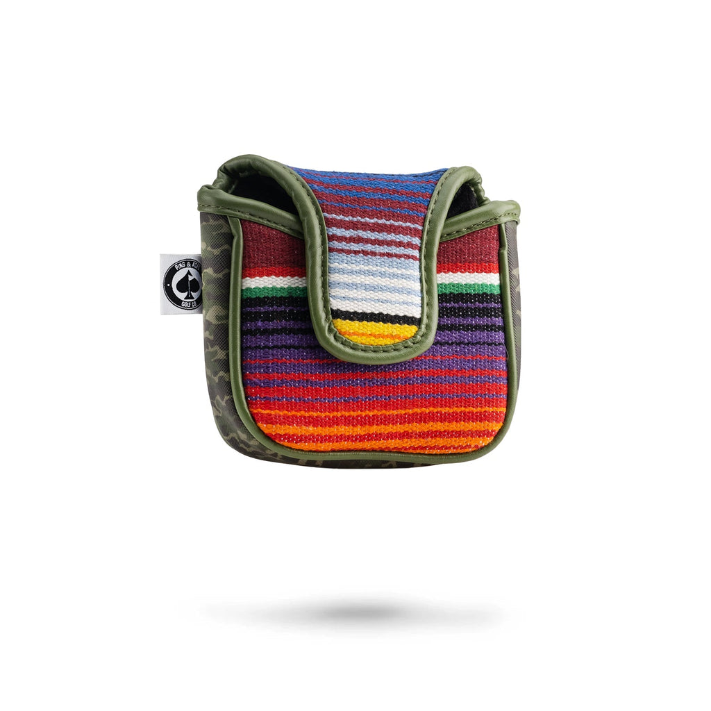 Stylize and customize the look of your golf bag with this high quality, hand-made putter headcover. Featuring hand sewn panels and faux mustache with embroidered Sugar Skull design. The lower part of this cover is made from an authentic Mexican blanket. NOTE: each cover will be unique with a different cut of the blanket.