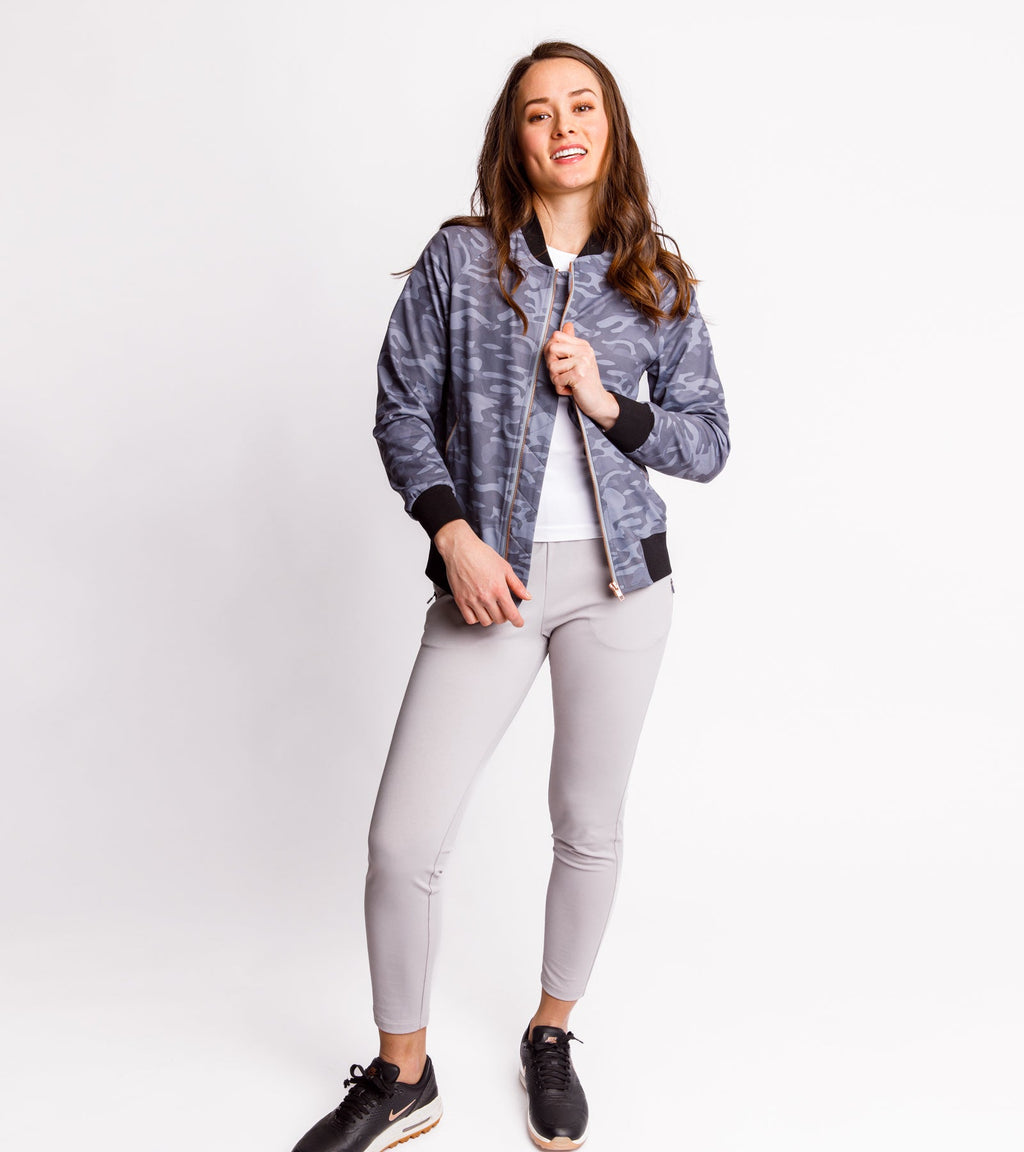 This jacket is bomb. A lightweight layering jacket that moves with you. Wear it on the course, to the gym or anywhere in between. This modern and sleek bomber jacket will keep you protected and stylish. Coming in black and gray camo.