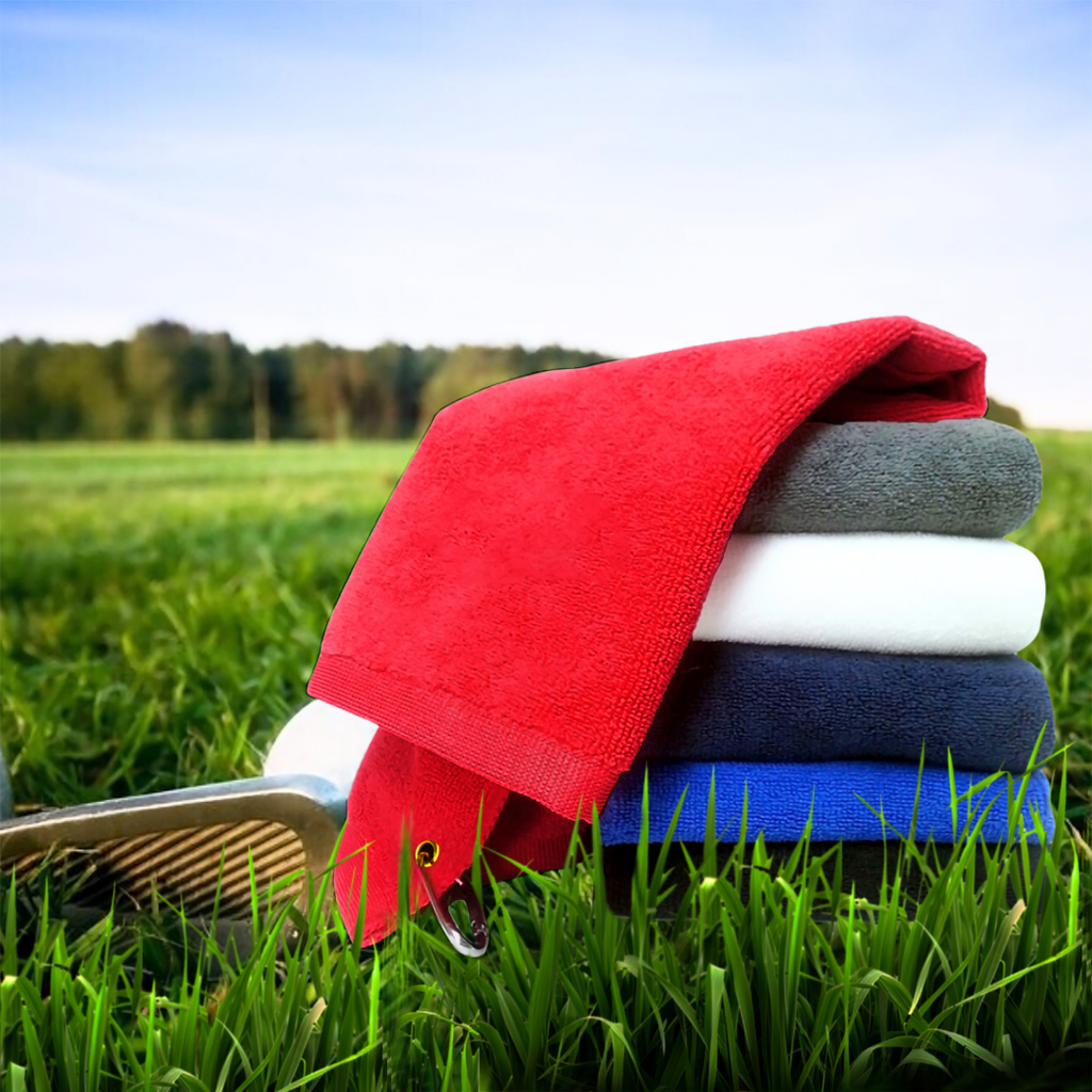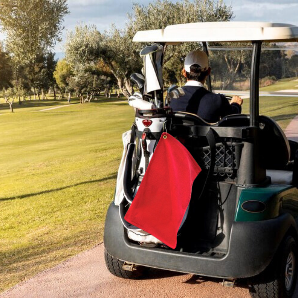 - Corner Grommet & Hook: Features a brass corner grommet and hook for easy hanging on your golf bag or cart, ensuring your towel is always within reach.