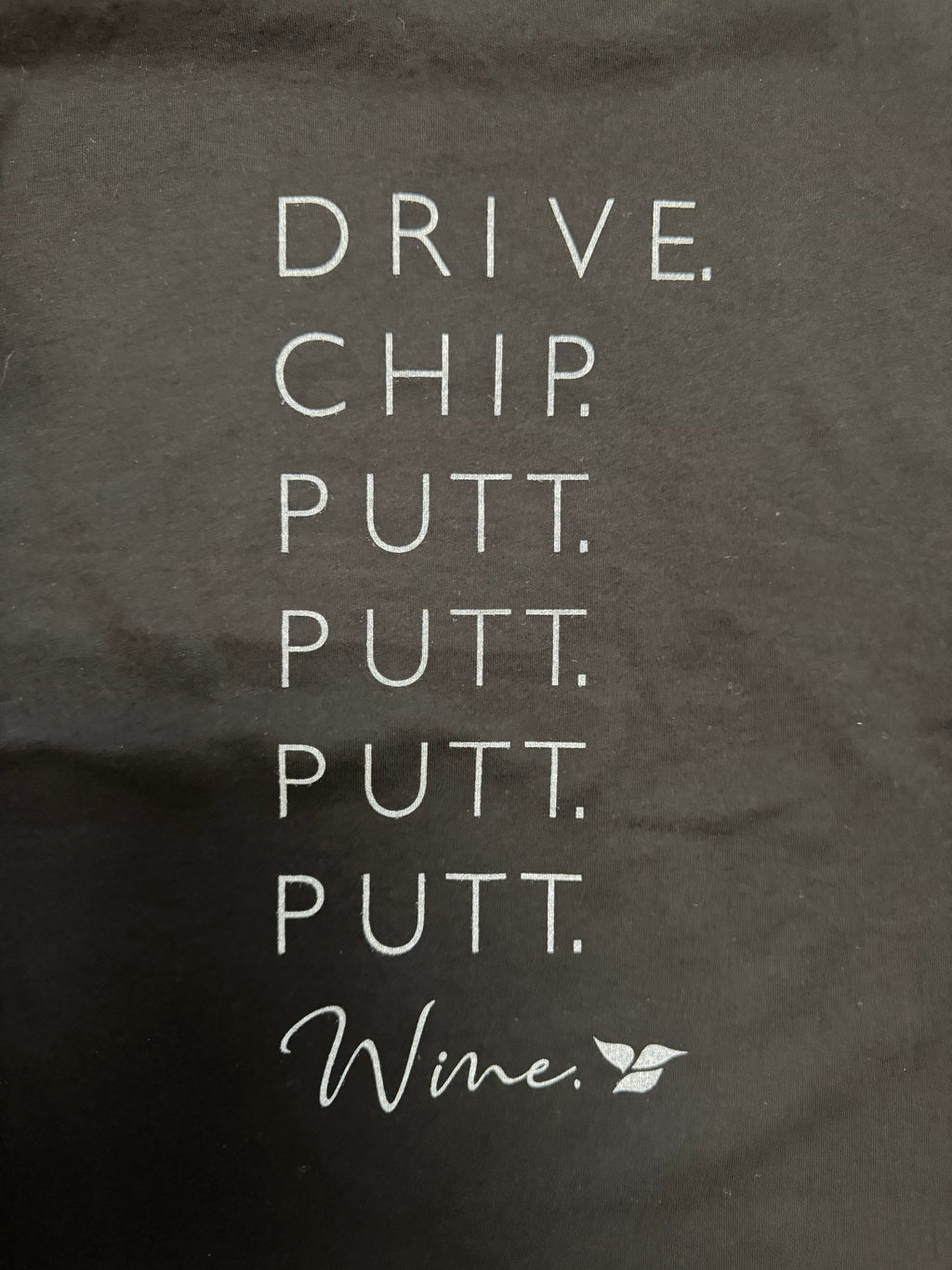Ok, so we’ve all had one too many…putts of course. No better way to embrace the challenges of the game with a little humor and a smooth glass of wine. This one’s for you ladies! Your favorite putt, putt shirt just released to pair with your favorite wine!