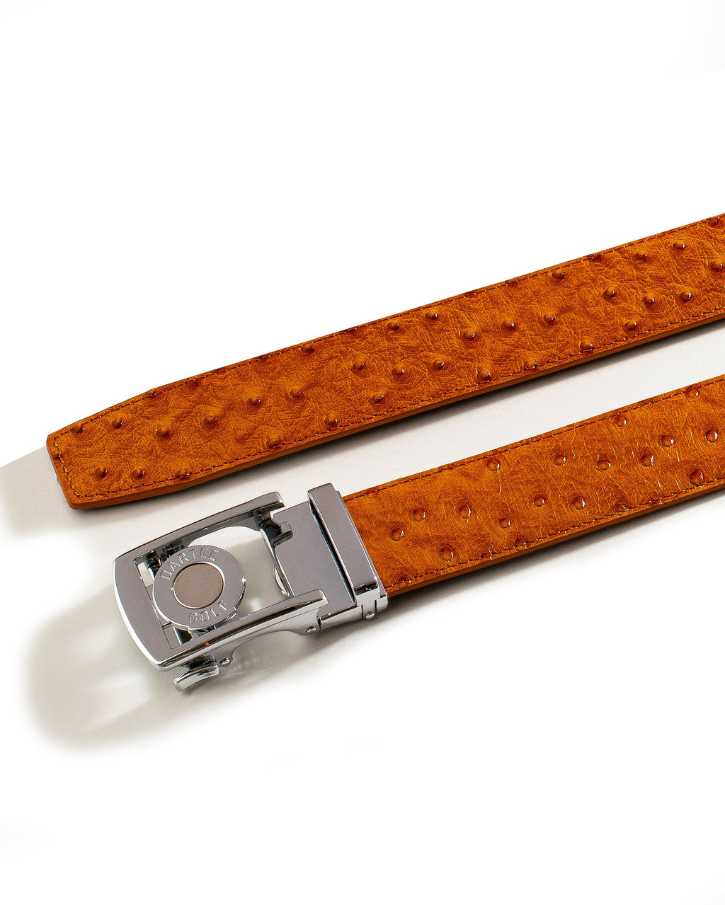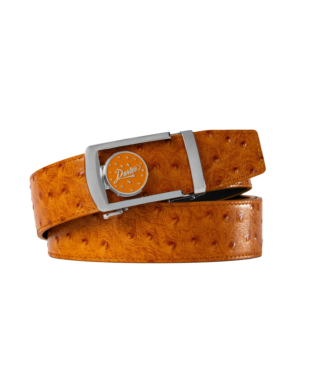 The Sand Trapped Ostrich Collection draws its inspiration from the game’s most humbling hazard — the bunker — and the timeless terrain of the desert. Made from genuine leather, each belt balances rugged texture with refined performance, delivering a statement piece worthy of any fairway.