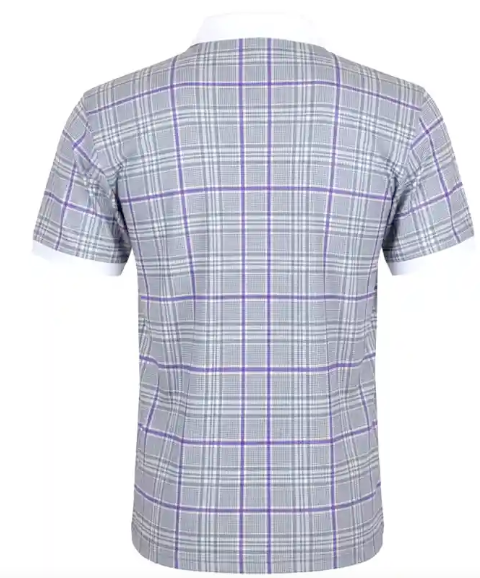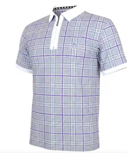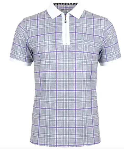 Men's Purple/Grey HT Plaid Cool-Stretch Golf Shirt by Tattoo Golf