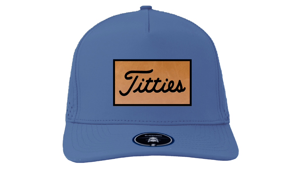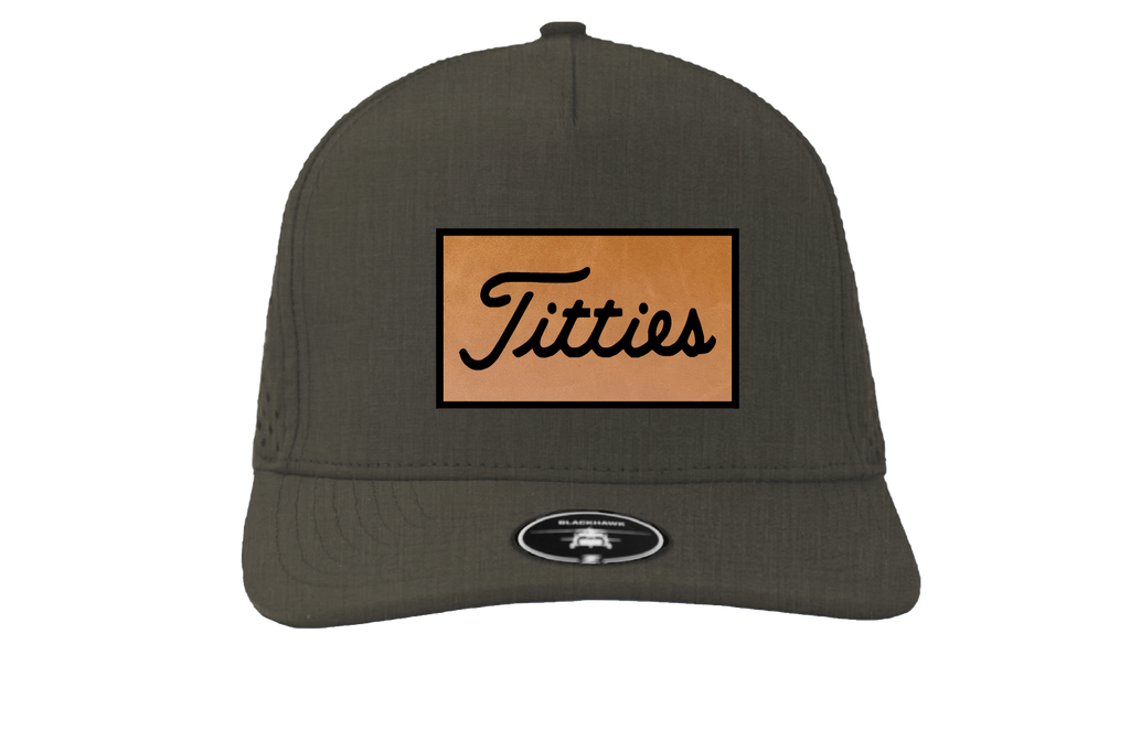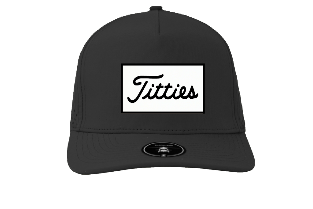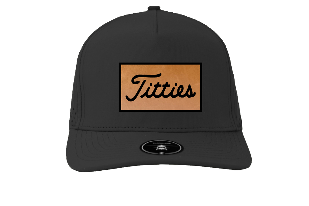 This performance hat isn't just built for comfort—it's built for conversation. Featuring a breathable, sweat-wicking fabric and structured fit, it's perfect for the golf course, lake day, or any situation where a little attitude goes a long way. Front and center is a premium leatherette patch proudly stamped with the word "Titties"—a cheeky twist on classic golf branding that’s sure to turn heads and crack smiles. Lightweight, durable, and just the right amount of inappropriate.